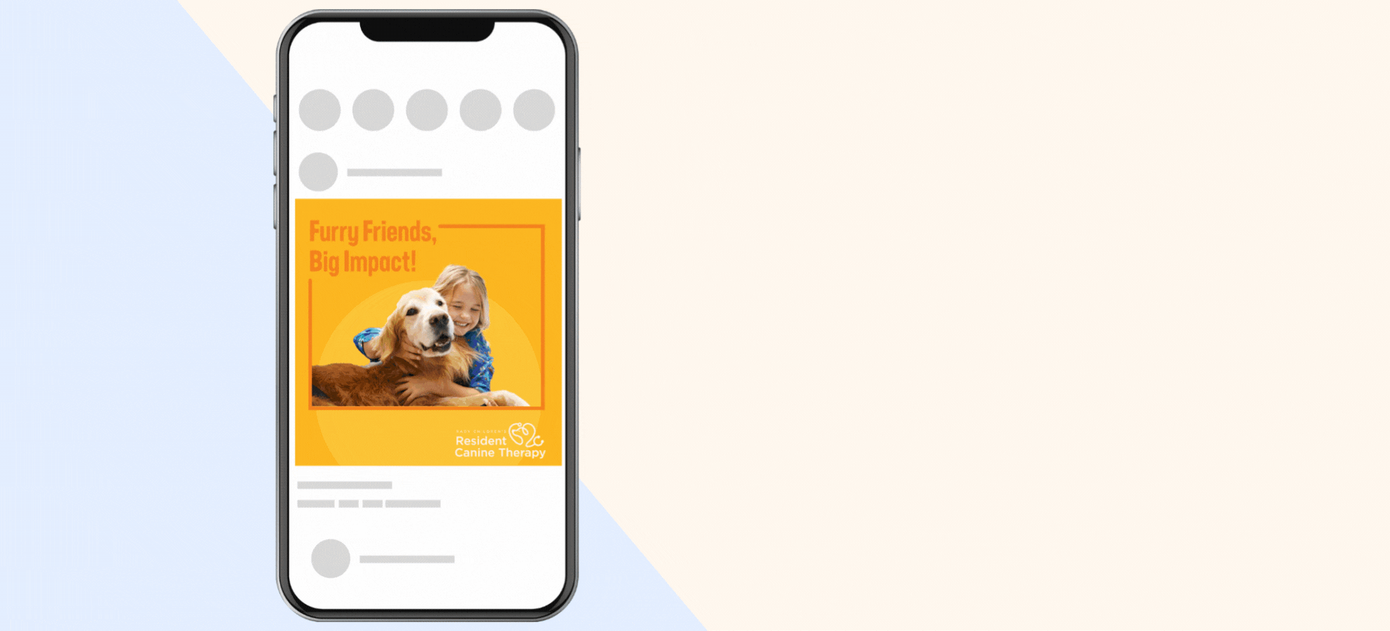 Objective: As a graphic designer for Rady Children’s Hospital, I developed a campaign to introduce a canine therapy program at Rady’s. Hospital stays can be stressful for kids, but therapy dogs have been shown to provide comfort, reduce anxiety, and make the environment feel a little more welcoming. My role was to create clear, engaging visuals that highlight the program’s impact and encourage community support. Through thoughtful design, storytelling, and strategic branding, I brought this initiative to life and ensured that more kids can experience the benefits of animal-assisted therapy.